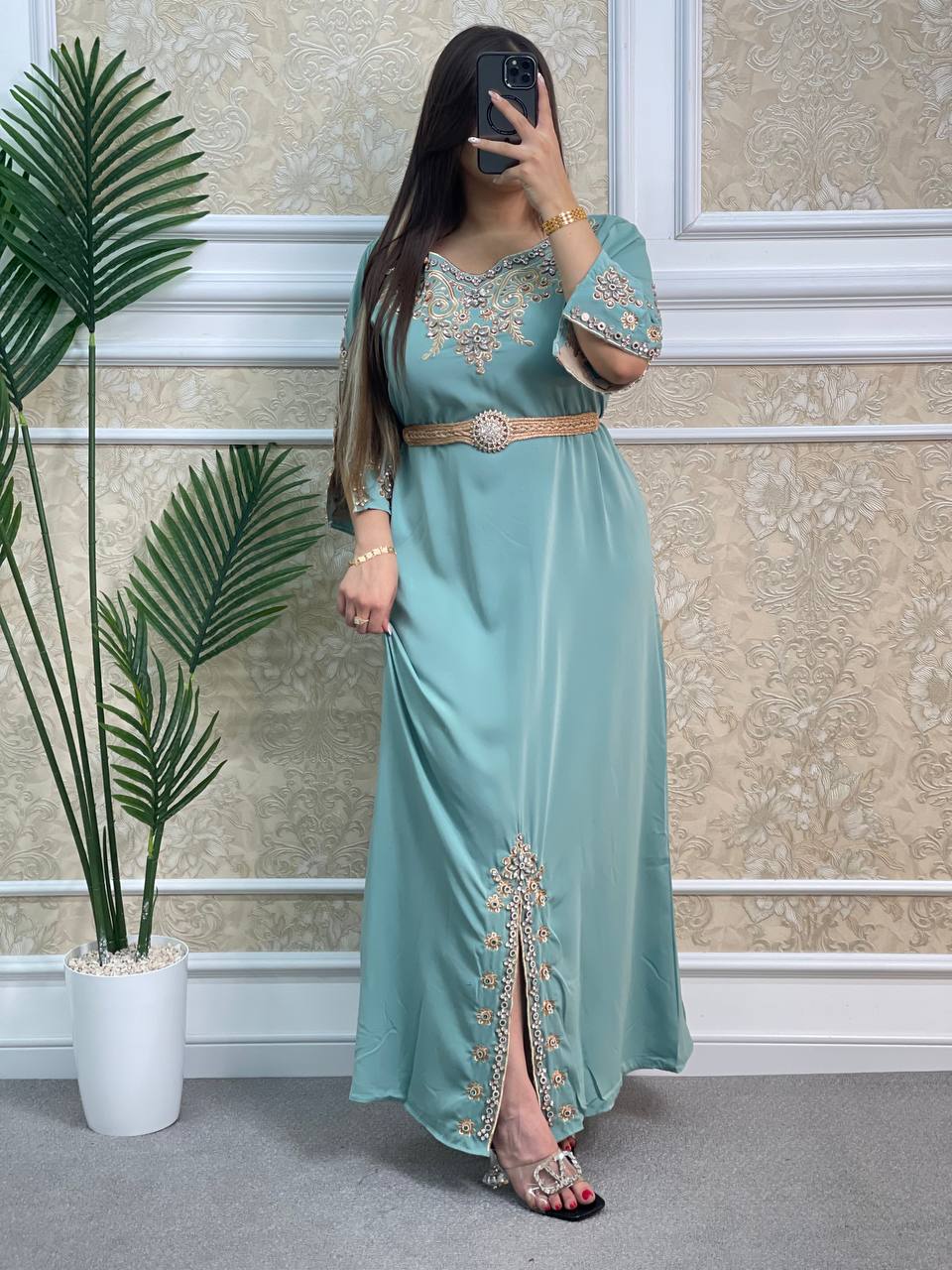 Abaya élégante et moderne avec finitions de qualité. Disponible en plusieurs tailles.